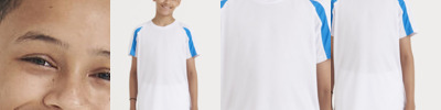 Contrast inserts on front and back sleeves. Crew neck. Raglan sleeve design. AWDis's own Neoteric TM textured fabric with inherent wickability. Self fabric taped back neck. Self fabric collar. Printed back neck. Size (Age) XS - 3/4, S - 5/6, M - 7/8, L - 9/11, XL - 12/13"
