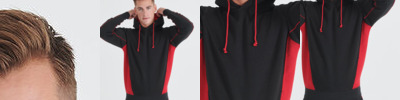 Contrast shaped side panelling, contrast piping on sleeve, raglan sleeves, Contrast lined hood, angled front pockets Also available in kids'