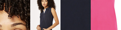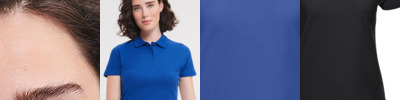 Perfect woman fit, short-sleeved polo shirt. 1x1 flat knitted collar and cuffs. Feminine placket with 2 matching colour buttons.