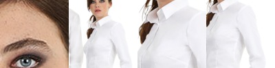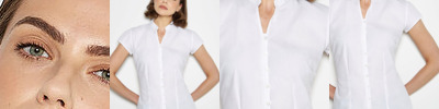 Soft feminine collar. Cross stitched mother-of-pearl effect buttons. 2-button adjustable cuffs: a. Angular cuffs & thin square-shaped gauntlets b. Additional cufflink buttonholes Darts at bustline & front and back panel for a feminine shape. Horizontal last buttonhole. 100% Twill cotton