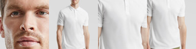 Slim fit. Self fabric neckline. Contrast taped neck on colors & matching taped neck on white. Twin needle finishing.