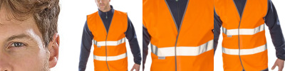 Full zip bodywarmer style. Mobile phone pocket. Two reflective tape bands around torso. Reflective tape band over each shoulder. Conforms to EN471: Class 2.