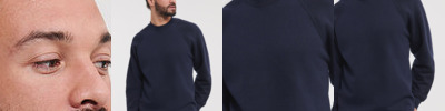 Crew neck, coverseamed. Rib knit collar for shape retention. Elasticated cuffs and collar. SpotShield™ stain resistant coating. Flatlock stitching on raglan seam. Also available in kids'.