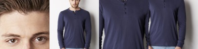 Four button placket. Tone one tone buttons. Side seams.