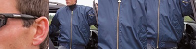 Knitted collar, cuffs and waistband with stripe details. Press-stud closure. Welt pockets. Hanging loop at back neck. Pocket with small opening for earphone cord feed. Hidden ear phone loops. Taped back neck. White coloured studs. Hidden ear phone loops. Worldwide Responsible Accredited Production (WRAP) certified production. SIZE XS - 34" S - 36" M - 40" L - 44" XL - 48" XXL - 52"