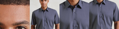 Soft button-down collar. Cross stitched motherof- pearl effect buttons. Short sleeves with narrow cuffs. The exclusive B&C Tie-Fix©. Back yoke with 2 overstitched side pleats. Left chest pocket. Inside lap seams for perfect finishing. Horizontal last buttonhole. Mitre-shaped bottom hem side reinforcement. Curved bottom hem.